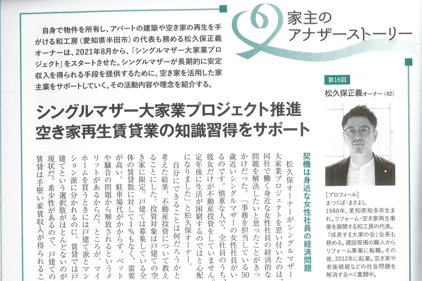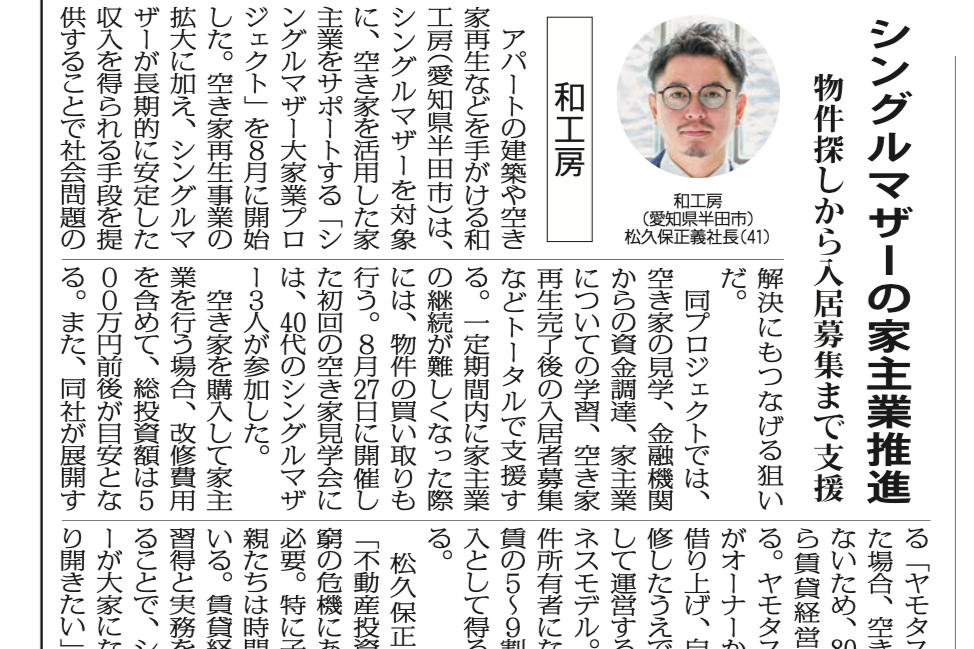リフォーム産業新聞(2021年8月9日)賃貸経営者初心者に中古リノベ提案 |