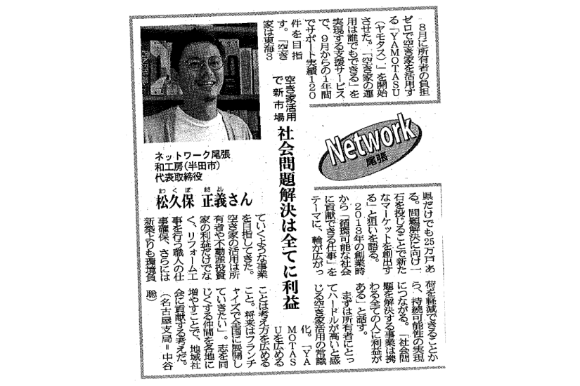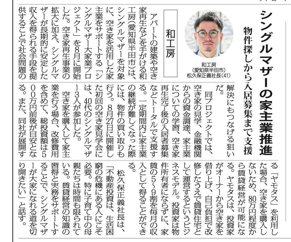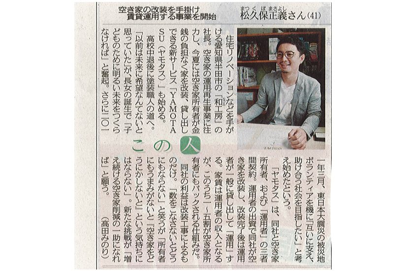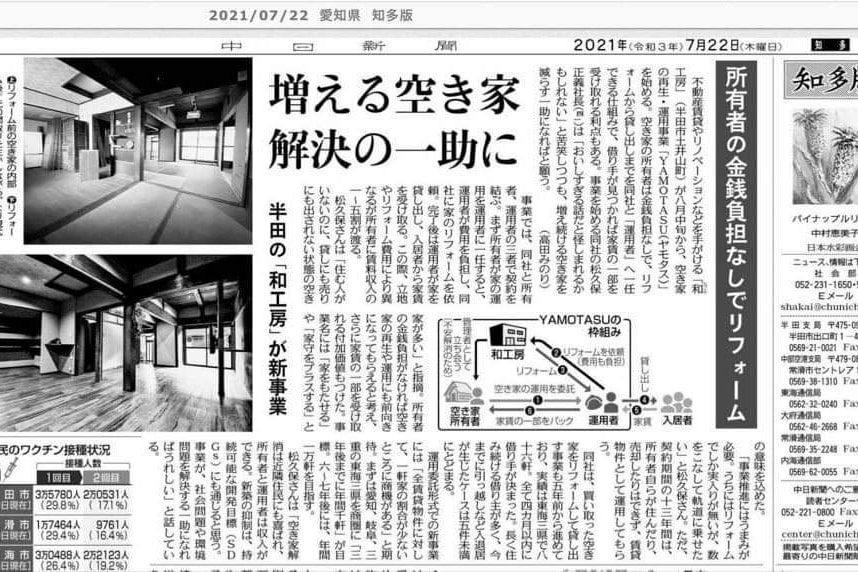 中日新聞(2021年8月12日)空き家の改装を手掛け |
