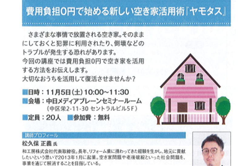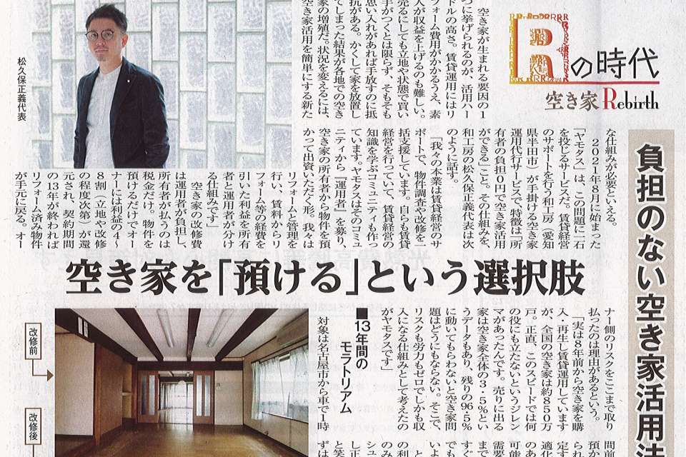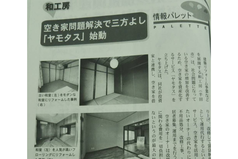 日本物流新聞(2022年12月5日)負担のない空き家活用法「ヤモタス」とは |