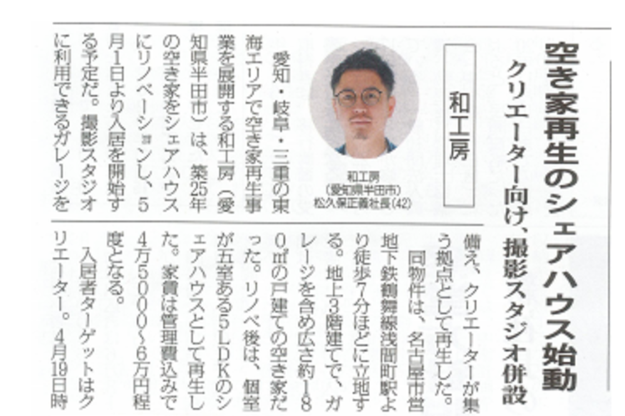 全国賃貸住宅新聞(2022年5月2日)空き家再生のシェアハウス始動 |